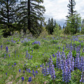 Watercolor - Handie's Peak Landscape with Blue Columbine by Cascade Colors