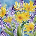 Watercolor - Columbine and Sunflower Landscape by Cascade Colors